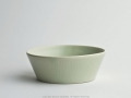 直径15cmの平鉢、リムのある器です。器の外側に縦ラインが削られ、釉薬により濃淡のある緩い凹凸が出来上がってます。 近くで見るとこの凹凸がアクセントになり平鉢のシンプルなデザインを個性的に仕上げています。深みのある器なので、丼物や、麺類など盛りつけられます。この平鉢に盛付けるとカフェ風な感じの食卓も演出できます。 手作業で作っているため、ひとつひとつ表情が異なっているのも魅力的。 |