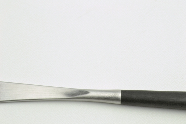 >拡大してみるとフォークとナイフのハンドルの加工の違いが分かります。使う人の事を考え抜いて作られているからこそ、ヨーロッパでベストセラーを続けている理由です。