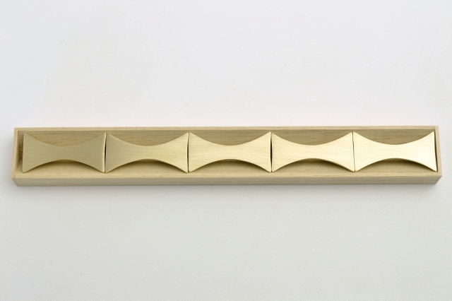 富山・高岡にて真鍮の鋳物メーカー『二上』。鋳肌を活かした無塗装・無垢の真鍮で作った箸置き『五つ月』は、やわらかい曲線で形作られた丸みのあるフォルムがやさしく女性的な印象です。